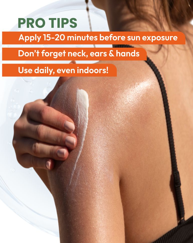 Blocks UVA (aging) & UVB (burning) rays.